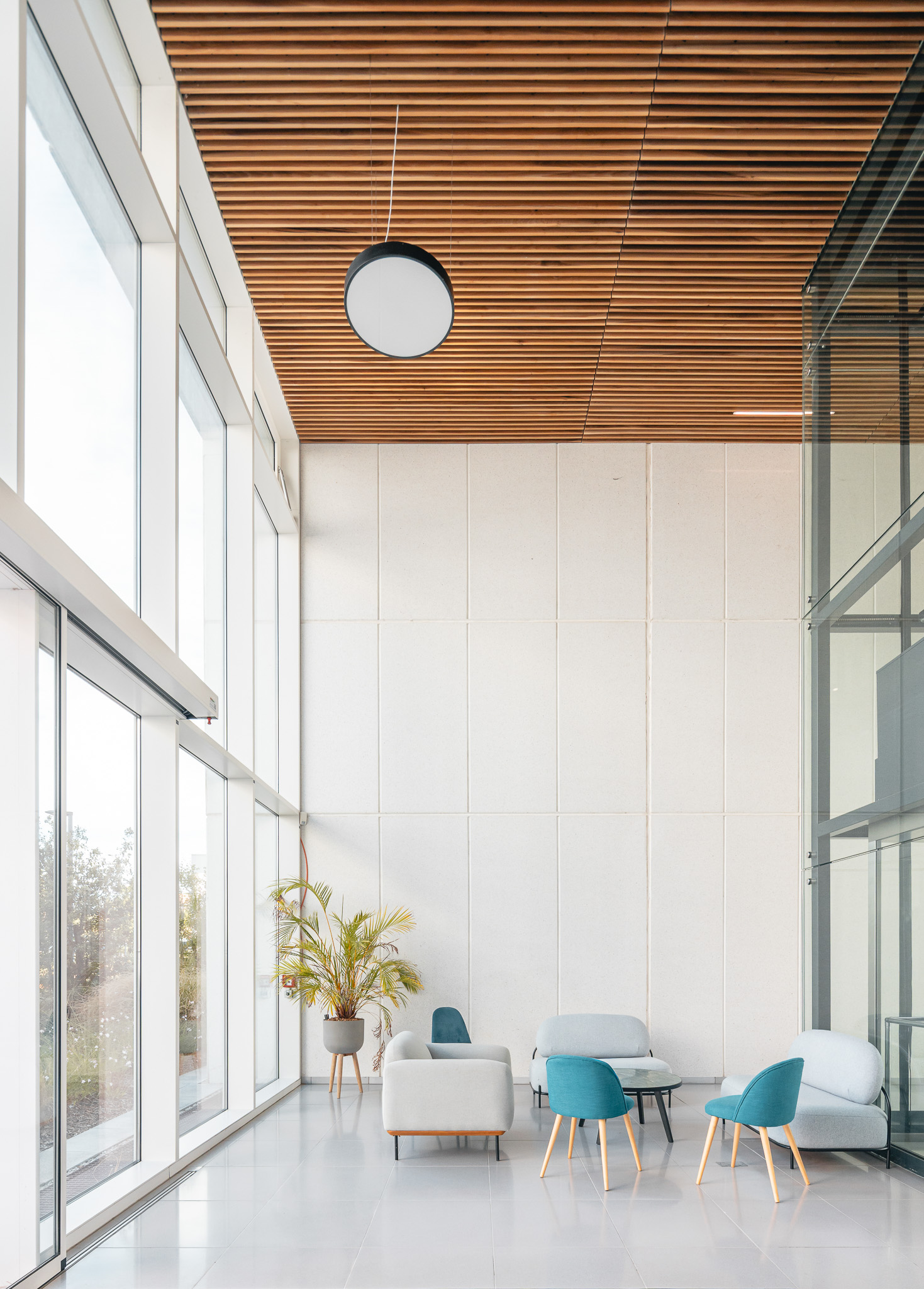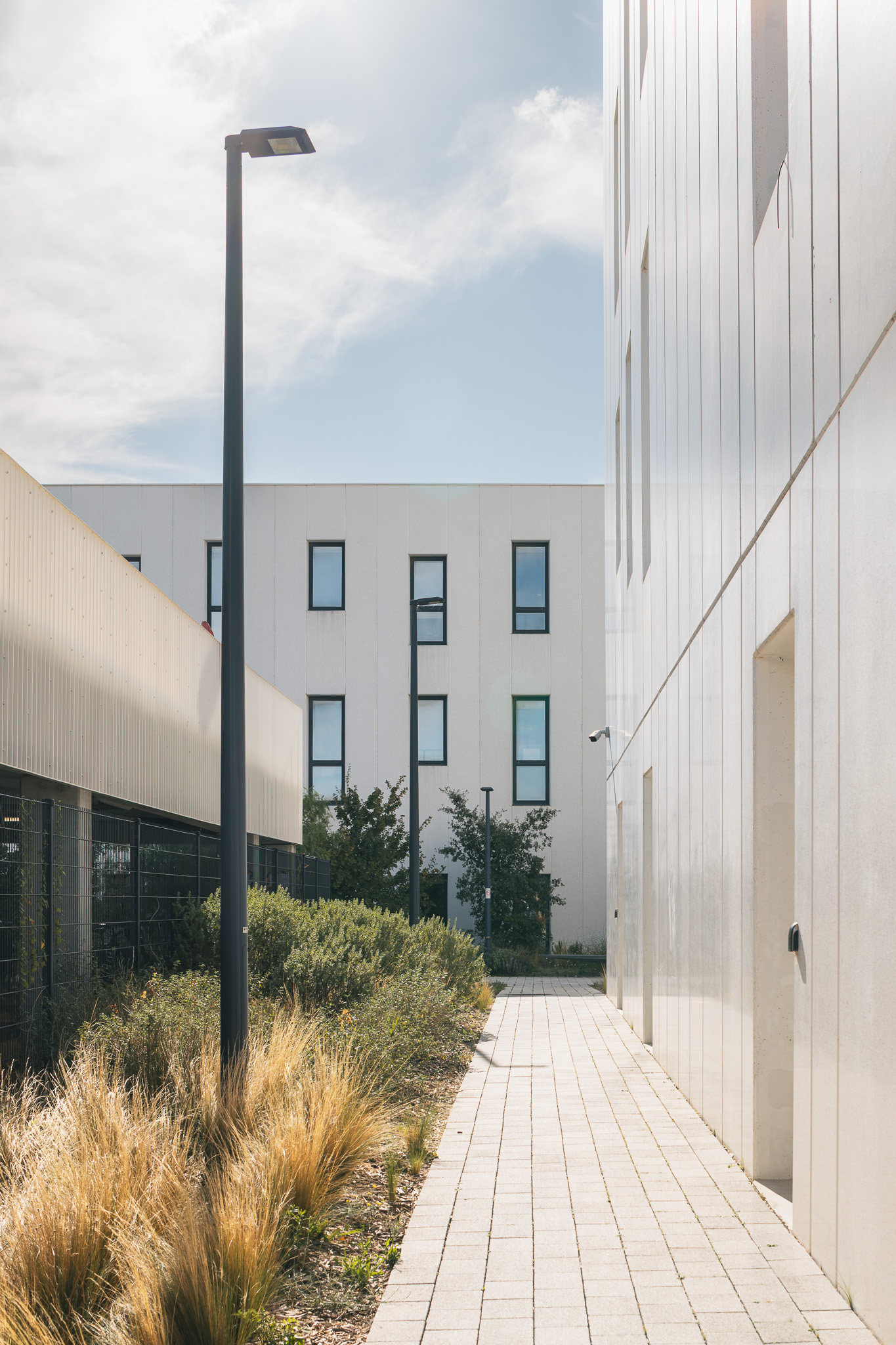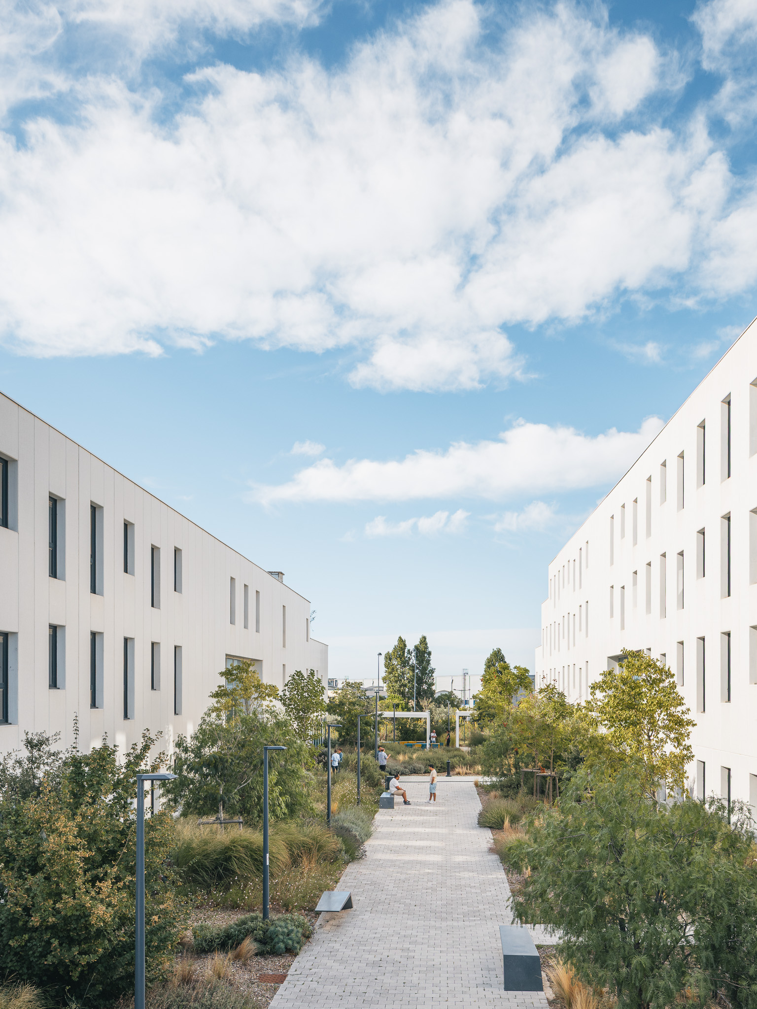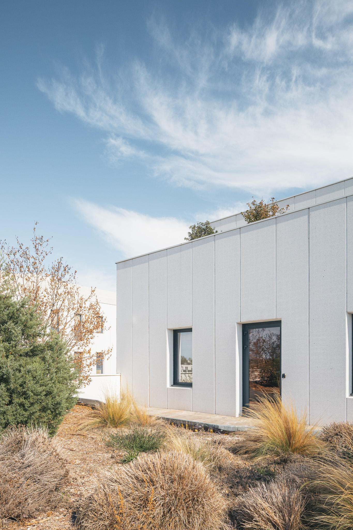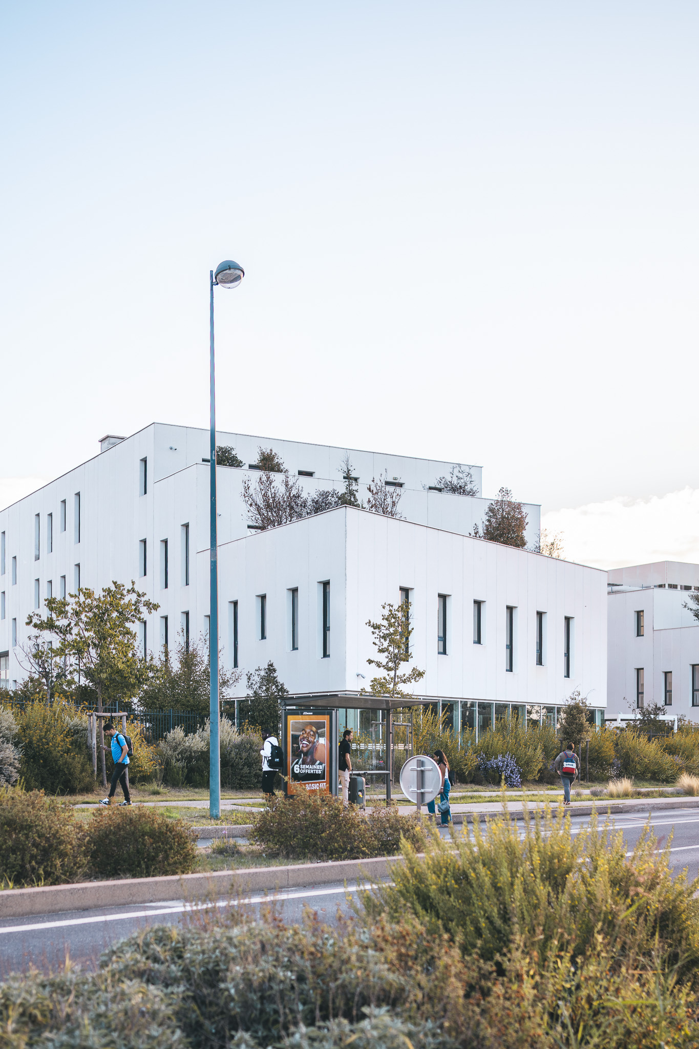 Ensemble parc tertiaire végétalisé et connecté, composé de trois bâtiments dans un parc arboré, sur le site de l’aéroport de Montpellier - Méditerranée.