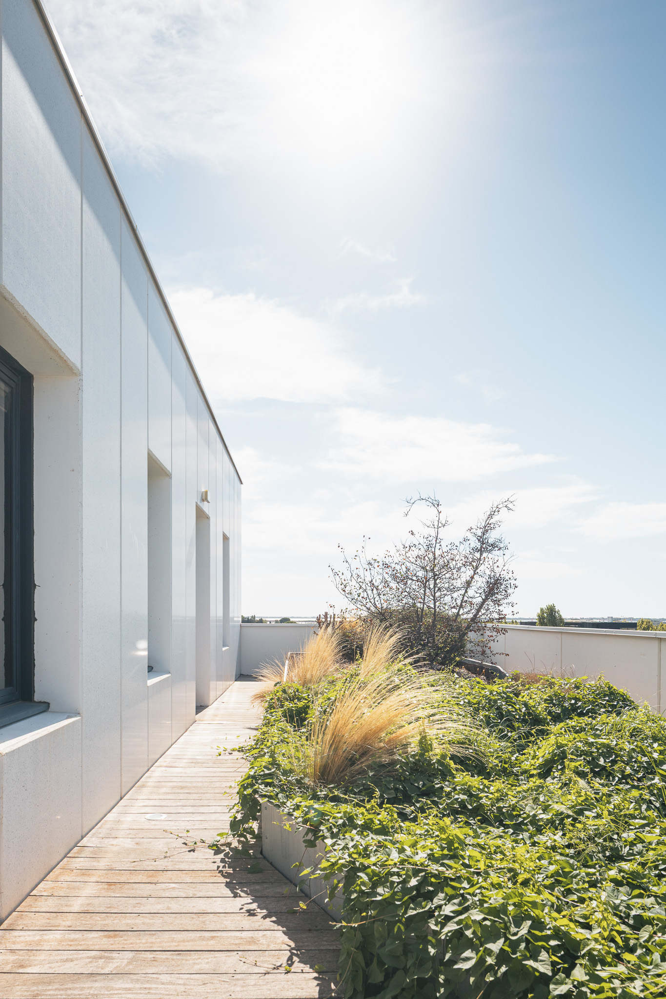 Chaque étage dispose de larges terrasses présentant des jardins suspendus (1 365 m² de terrasses et jardins suspendus sur l’ensemble de l’opération).