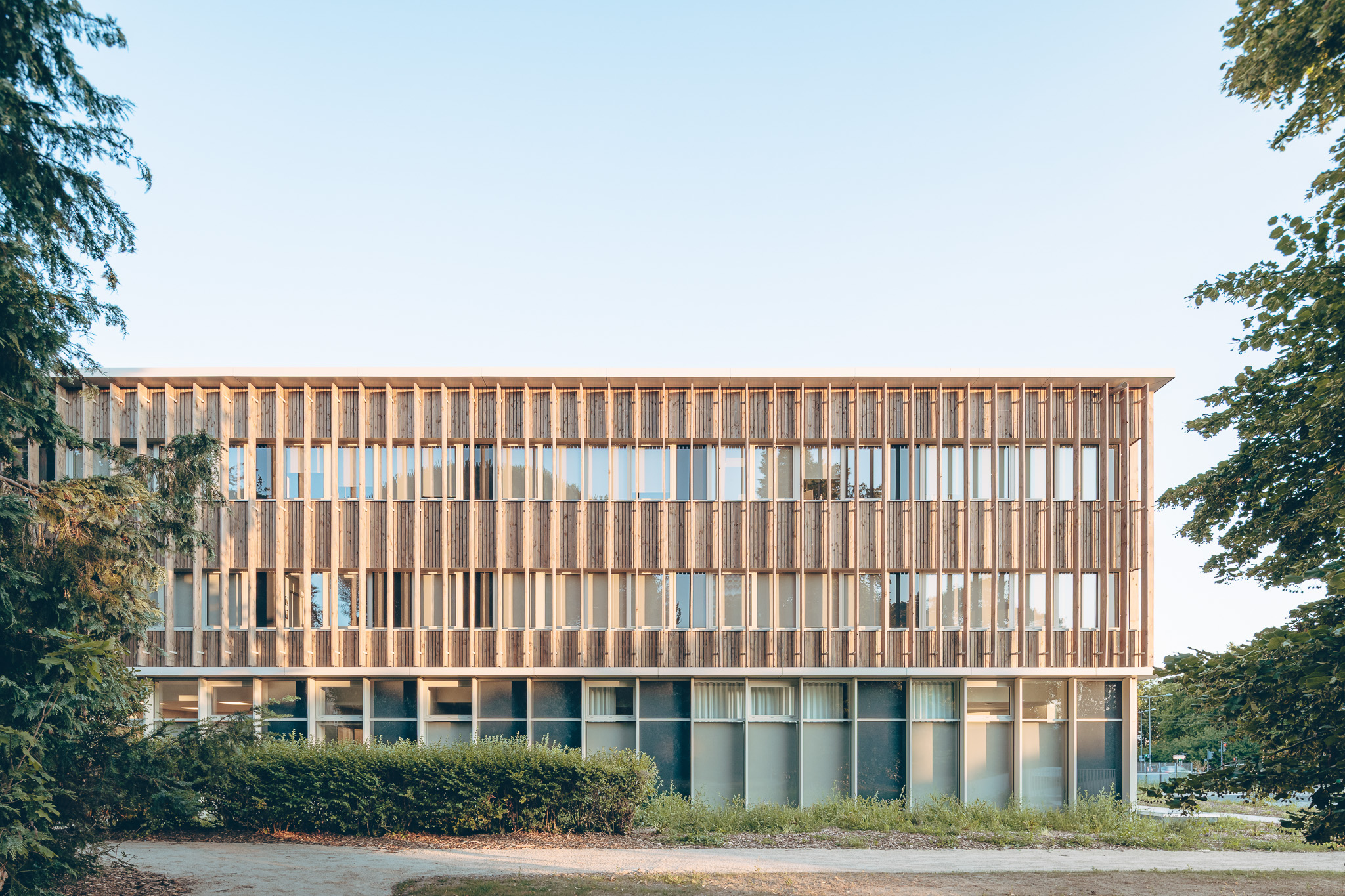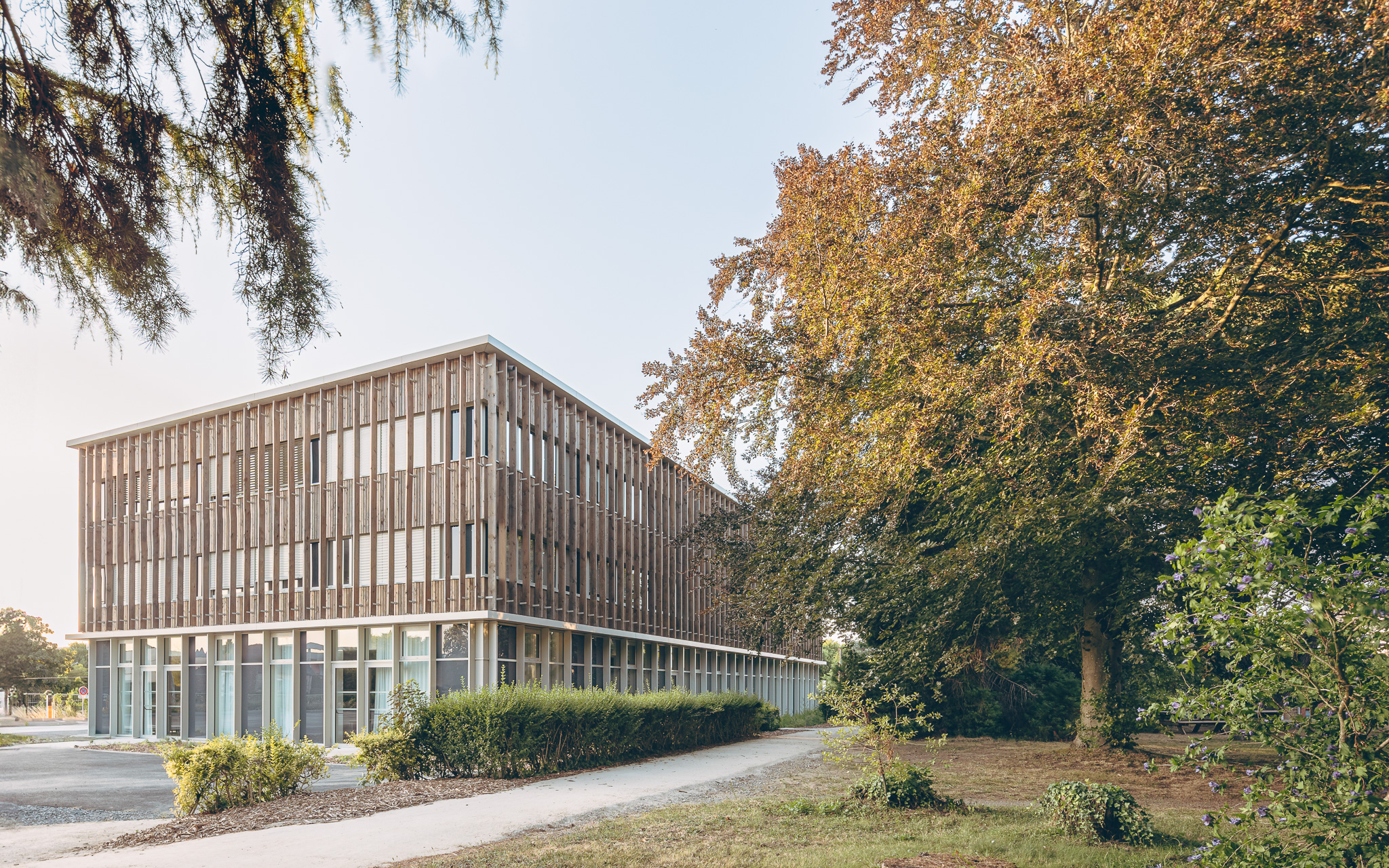 Le nouveau siège de la Direction diocésaine d’Ille et Vilaine se veut sobre avec des matériaux choisit renforcent le dialogue avec l’environnement. Conçu pour des bureaux le bâtiment allie rationalité du plan, compacité, économie foncière et avec son isolation thermique par extérieur le confort thermique. Les bureaux sont traversants, lumineux et conçus de manière modulable et évolutive.