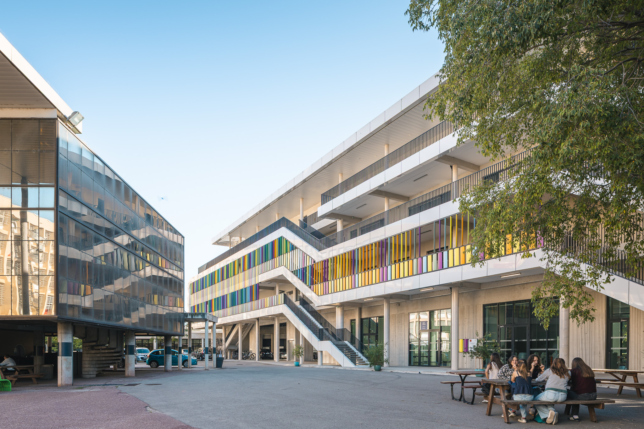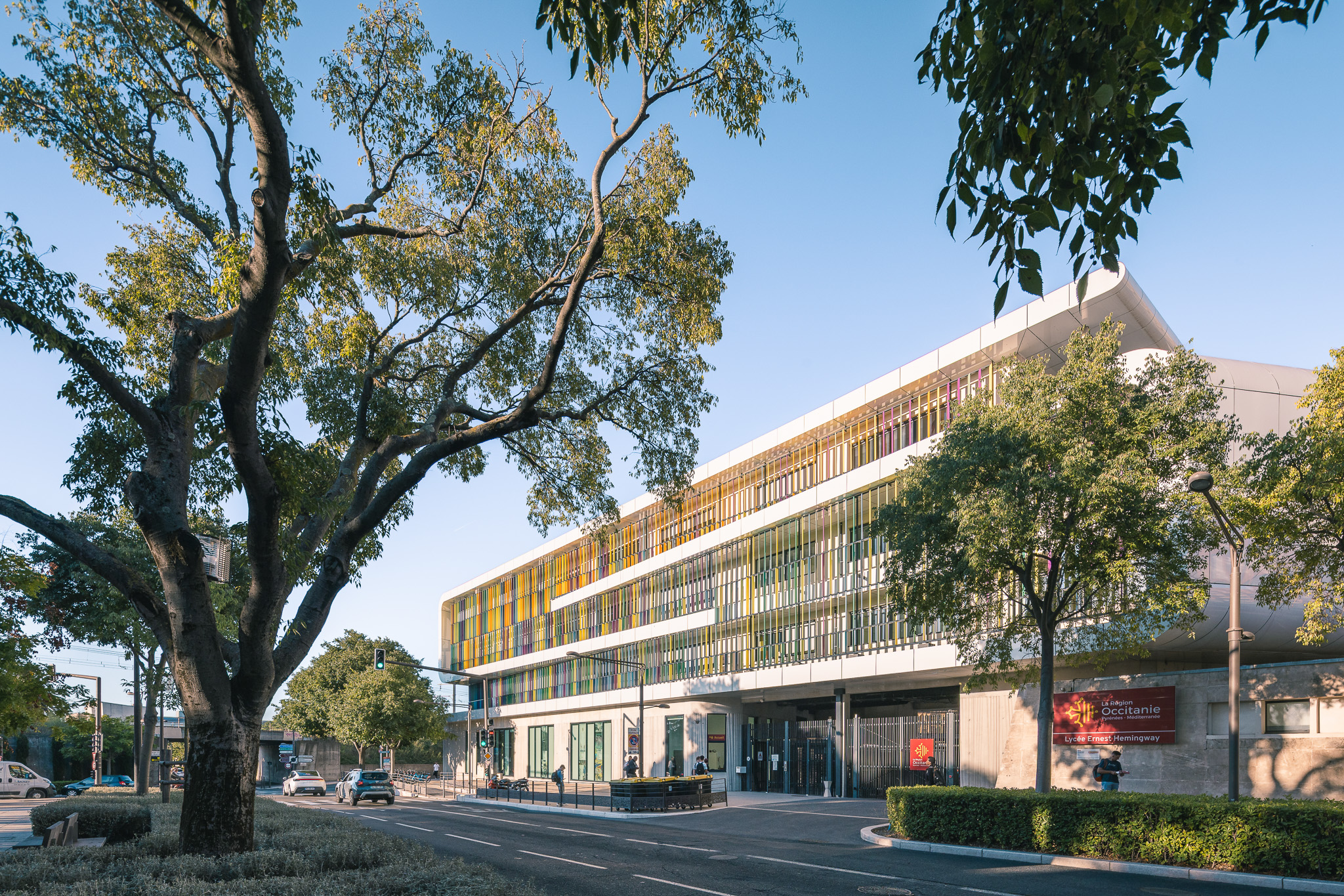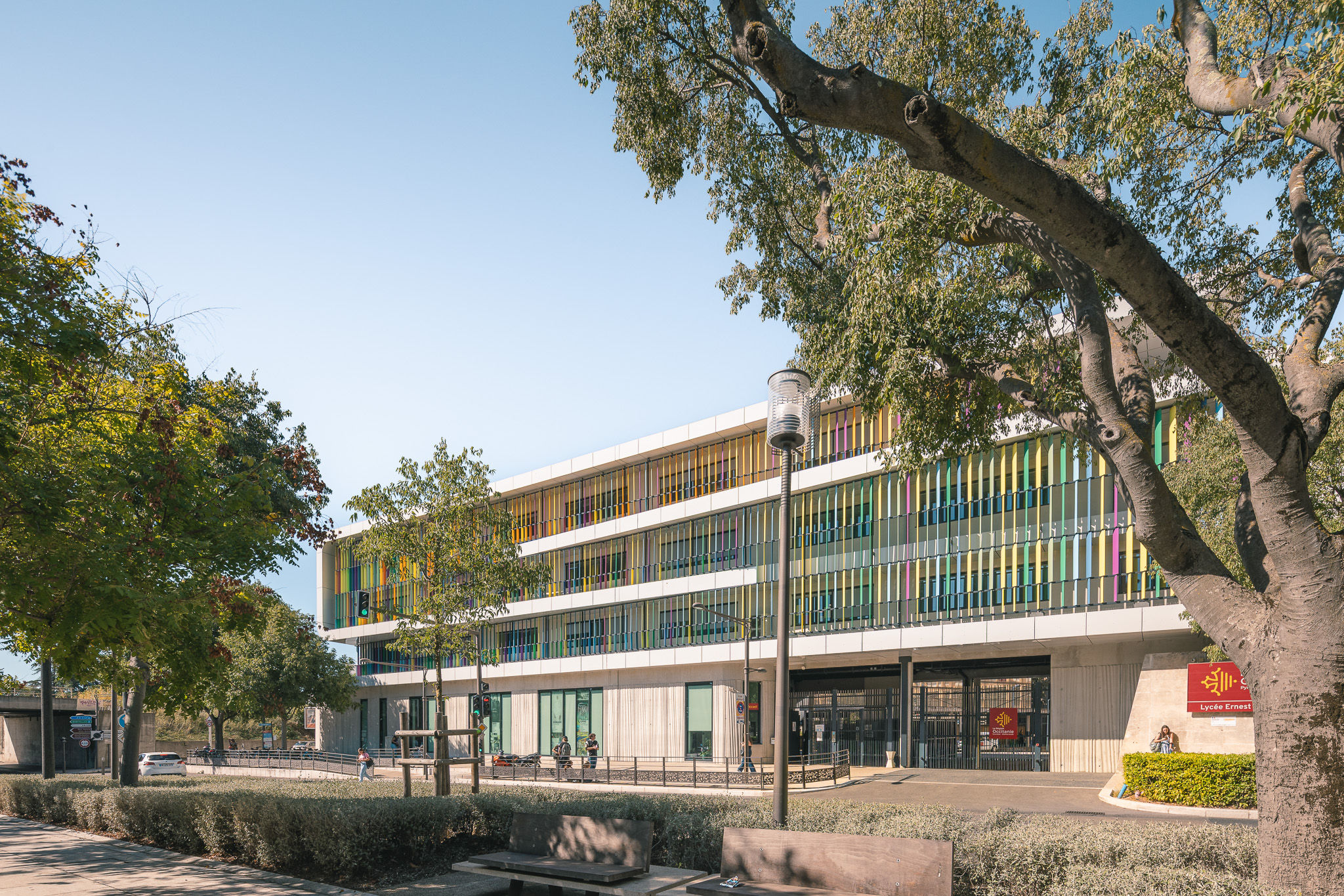 Construction de la nouvelle entrée et du bâtiment d’accueil. Restructuration de la restauration et du rez-de-chaussée de l'aile Sud du Bâtiment C du Lycée Ernest Hemingway à Nîmes.