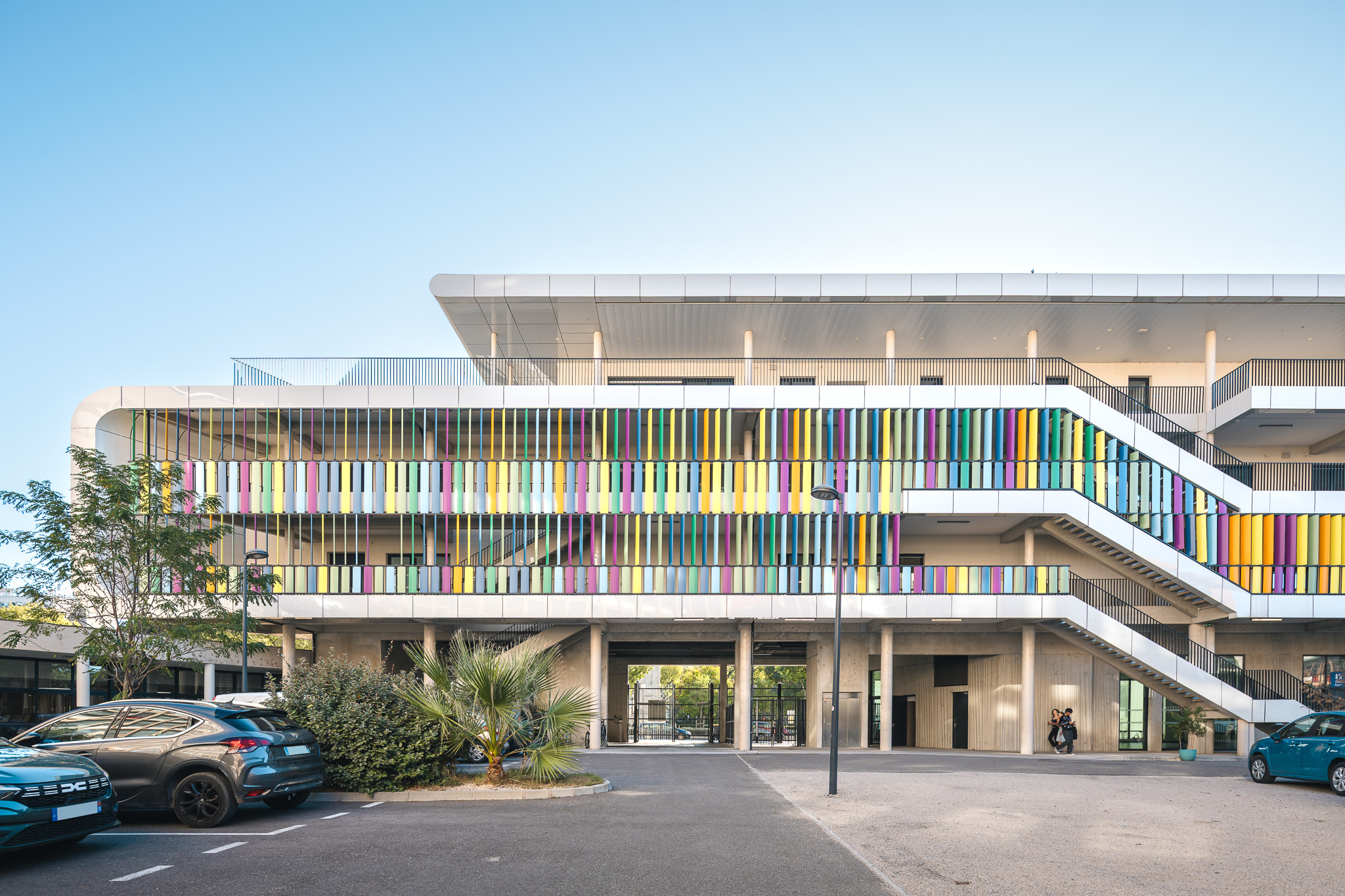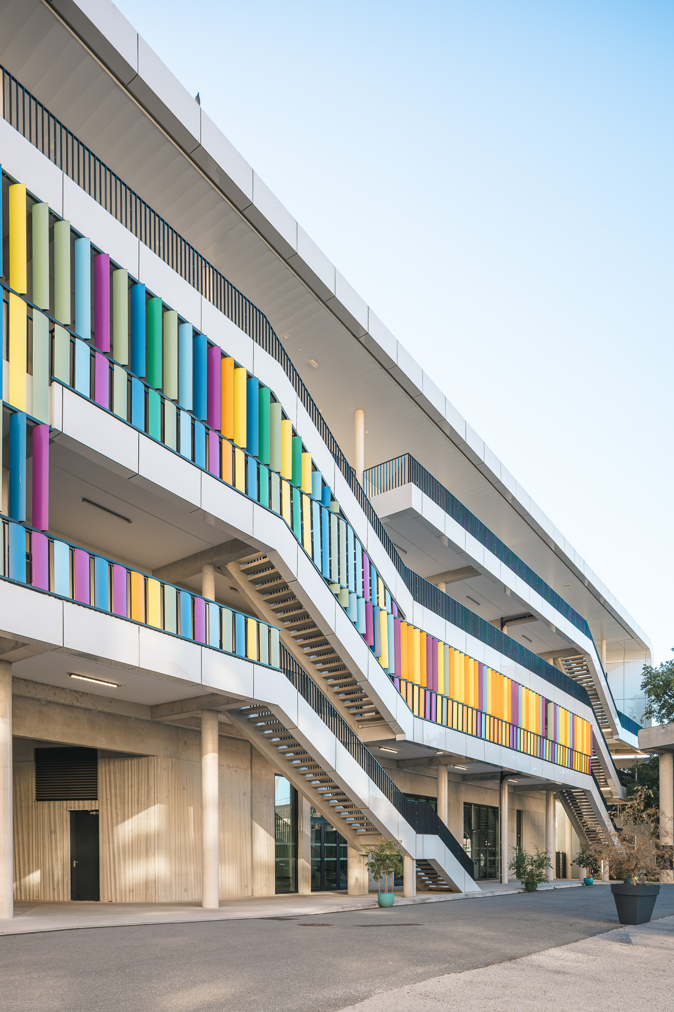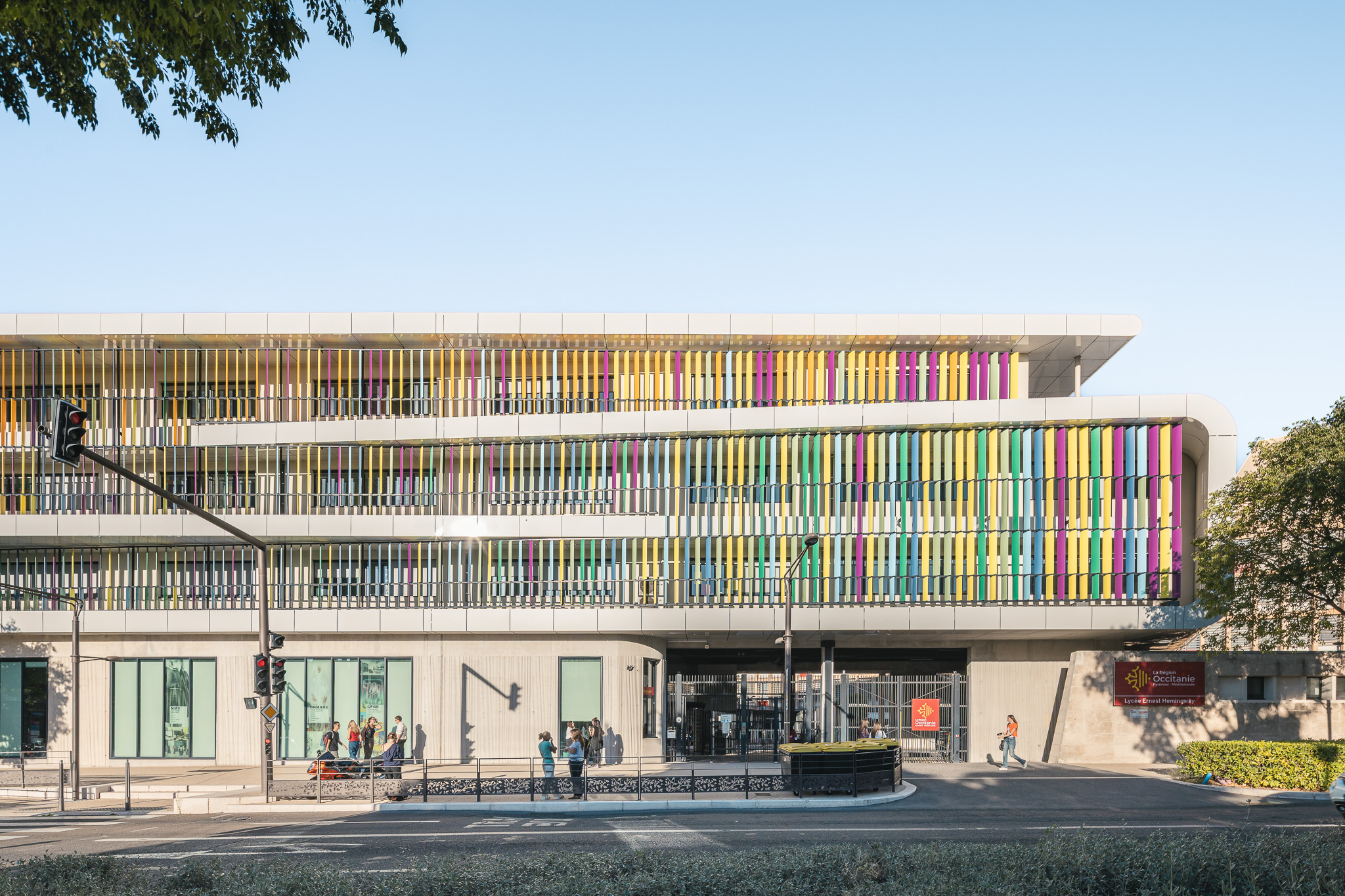 Construction de la nouvelle entrée et du bâtiment d’accueil. Restructuration de la restauration et du rez-de-chaussée de l'aile Sud du Bâtiment C du Lycée Ernest Hemingway à Nîmes.