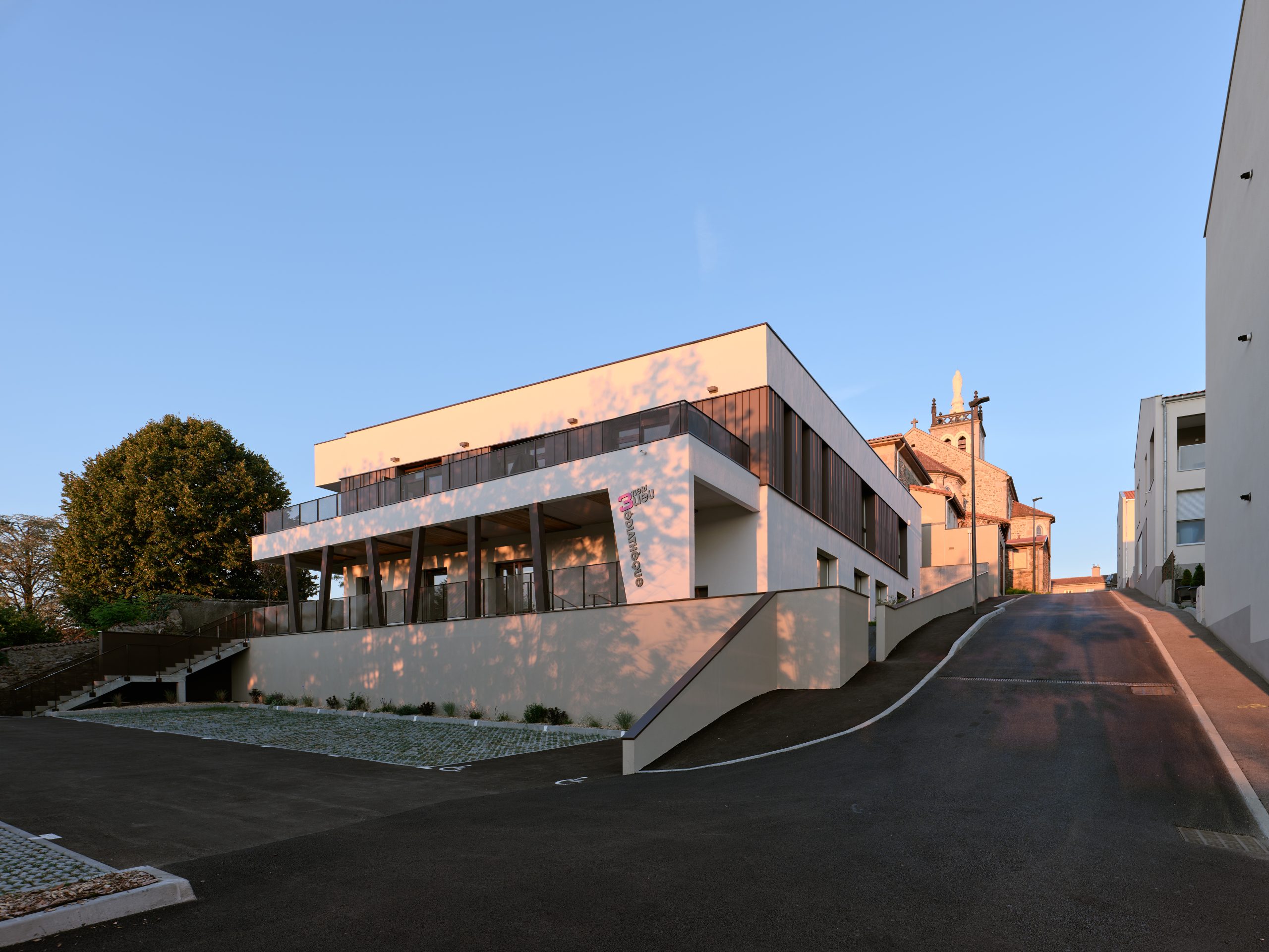 Ce projet de 955 m² au cœur du centre-bourg tire parti d’une parcelle contrainte, autrefois occupée par un presbytère, pour offrir un nouvel équipement tripolaire :