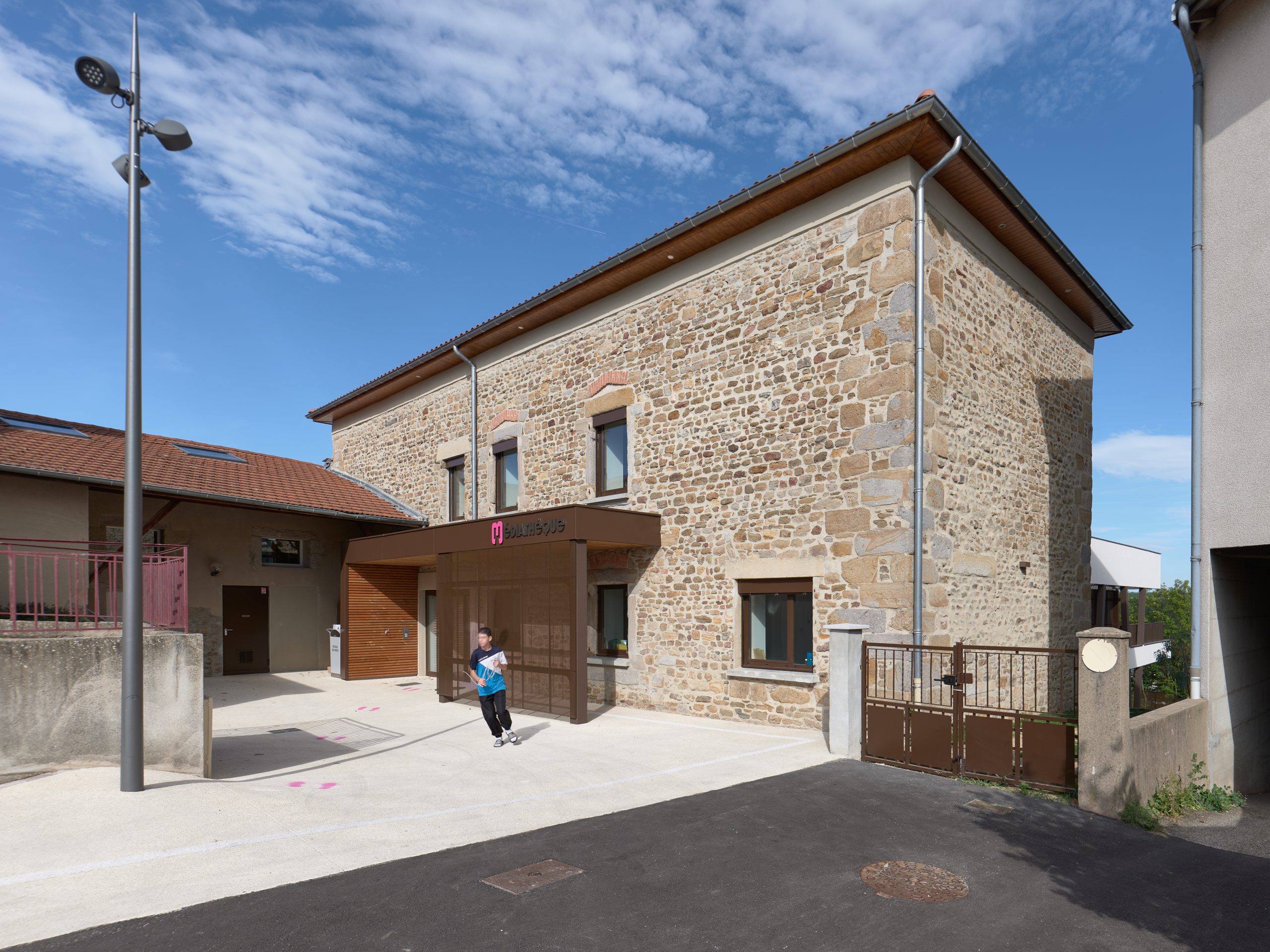 Réhabilitation du Presbytère et extension pour la création d'une médiathèque, de salles d'activités formant tiers lieux, et de locaux municipaux à destination culturelle. Chantier en site contraint (accès en impasse). Techniques mises en œuvres : soutènements en paroi projetées, reprises en sous œuvre.
