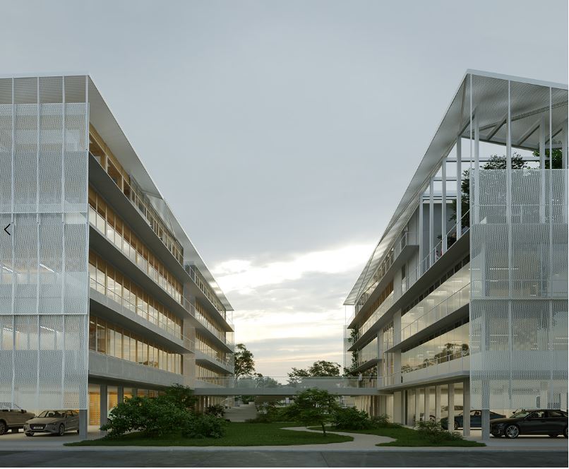 Construction du nouveau siège de la CCI du Gard. Projet associé à la réalisation du nouveau siège de l’UPE 30, réalisé sur la parcelle voisine pour la création de la Maison des entreprises.