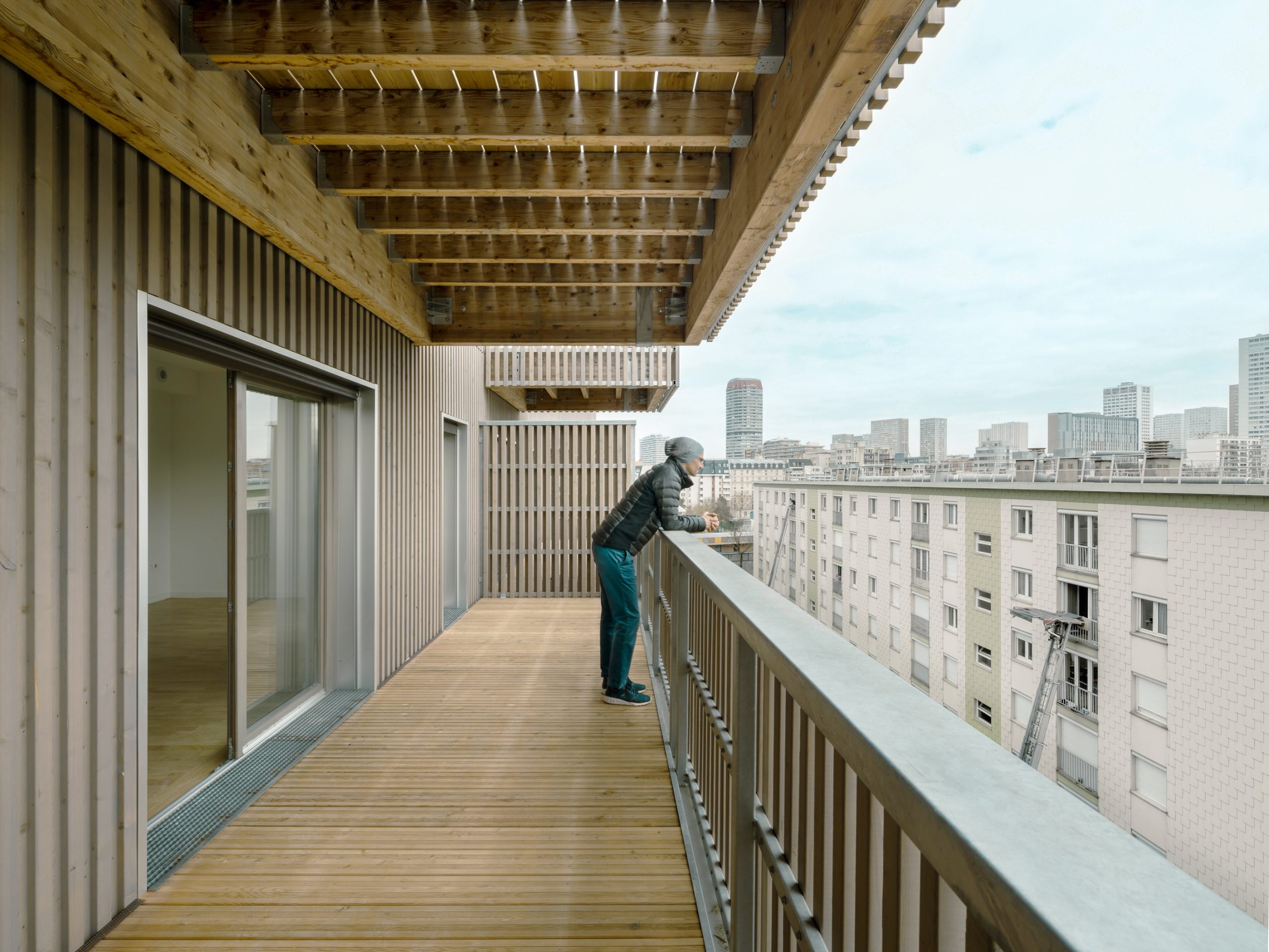 Un maximum de logements bénéficient de la vue directe sur le parc par le principe de grands séjours couplés à la cuisine, et prolongés par de belles terrasses. Même les séjours des logements en angle Nord/est sur la rue Paul Bourget s’ouvrent vers l’Ouest. Pour qu’il y ait une sorte d’équité entre tous.